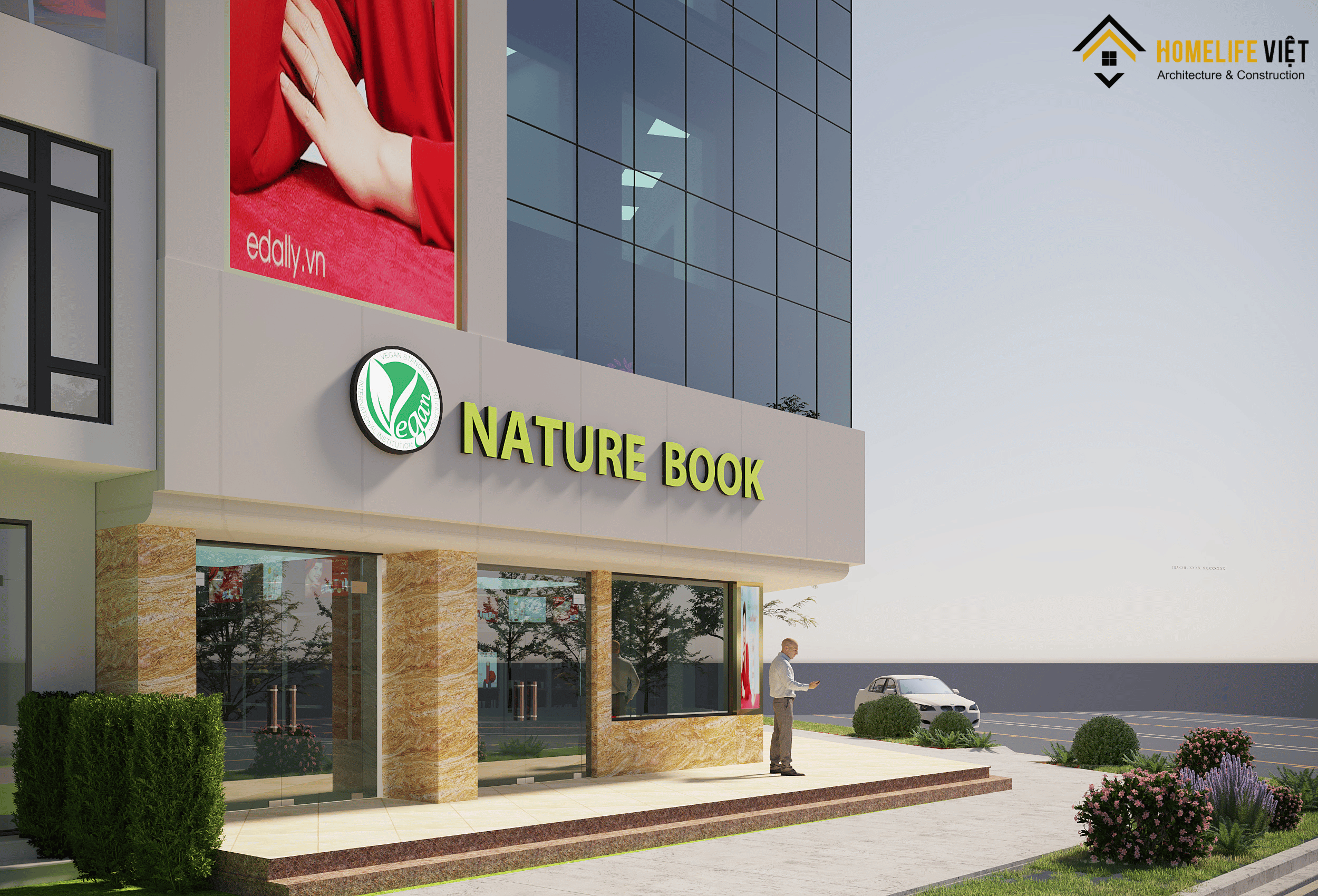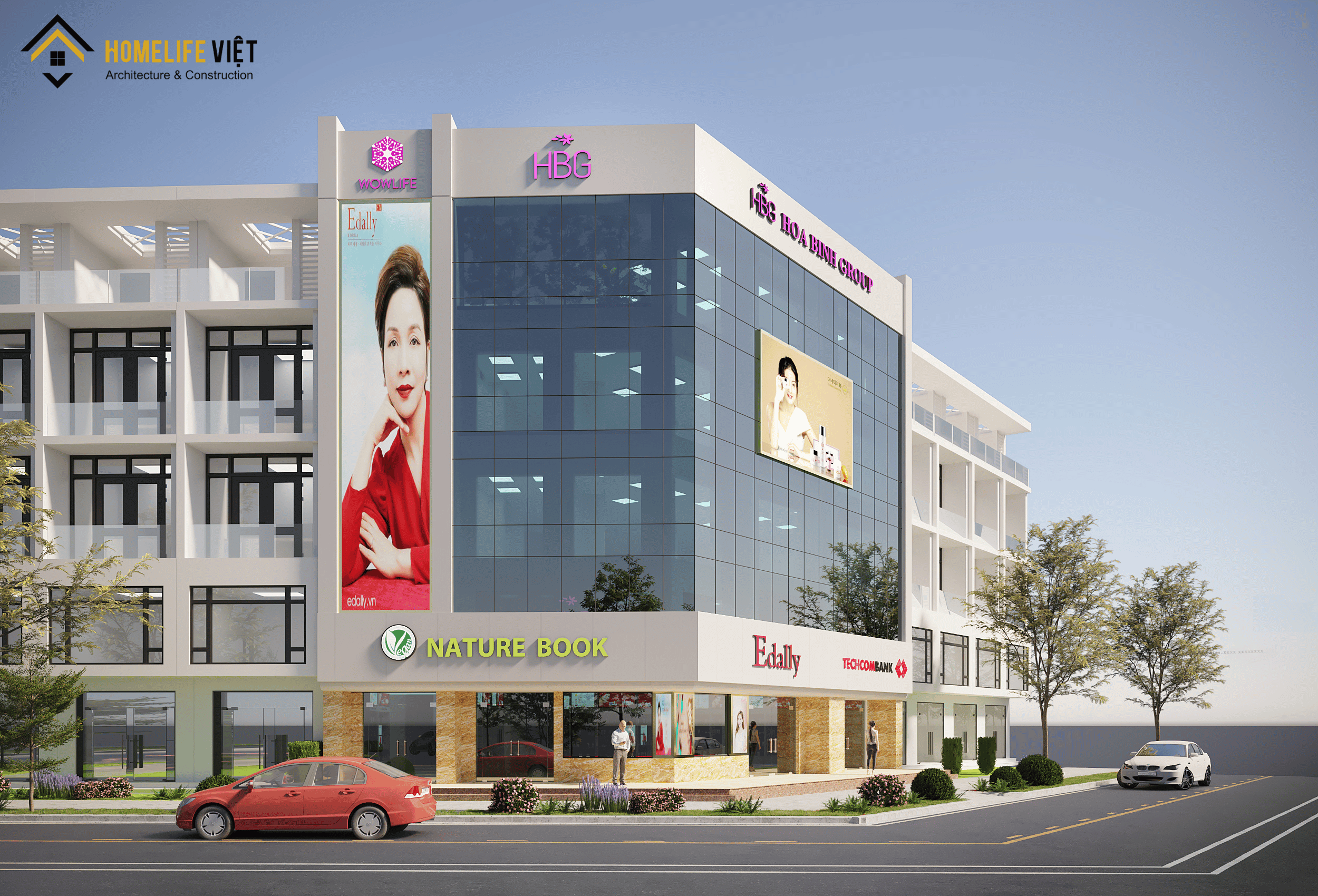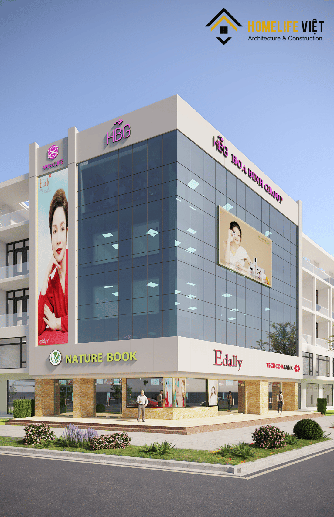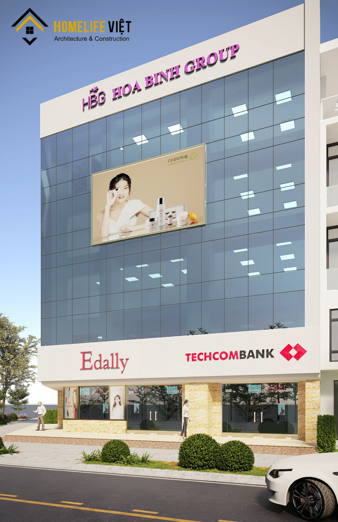 Với tổng diện tích sử dụng lên đến 1.000m² và mặt tiền rộng 25m, trụ sở chính của HÒA BÌNH GROUP được thiết kế quy mô 05 tầng theo phong cách hiện đại, sang trọng. Công trình tọa lạc tại vị trí đắc địa ngã tư trung tâm phố Trịnh Văn Bô – Xuân Phương, dễ dàng nhận diện và kết nối giao thông. Đây là trụ sở của HÒA BÌNH GROUP – tập đoàn mỹ phẩm và thực phẩm chức năng uy tín, hàng đầu Hàn Quốc. Thiết kế không chỉ khẳng định tầm vóc thương hiệu mà còn đáp ứng tối ưu nhu cầu vận hành, giao dịch và phát triển bền vững.